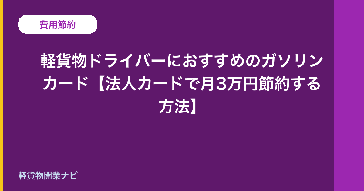 軽貨物ドライバーのガソリン代は月3〜5万円が相場。法人・個人事業主向けのガソリンカードを使えば1〜3円/Lの割引で月3,000〜9,000円の節約になる。年間で4〜11万円の差になる。