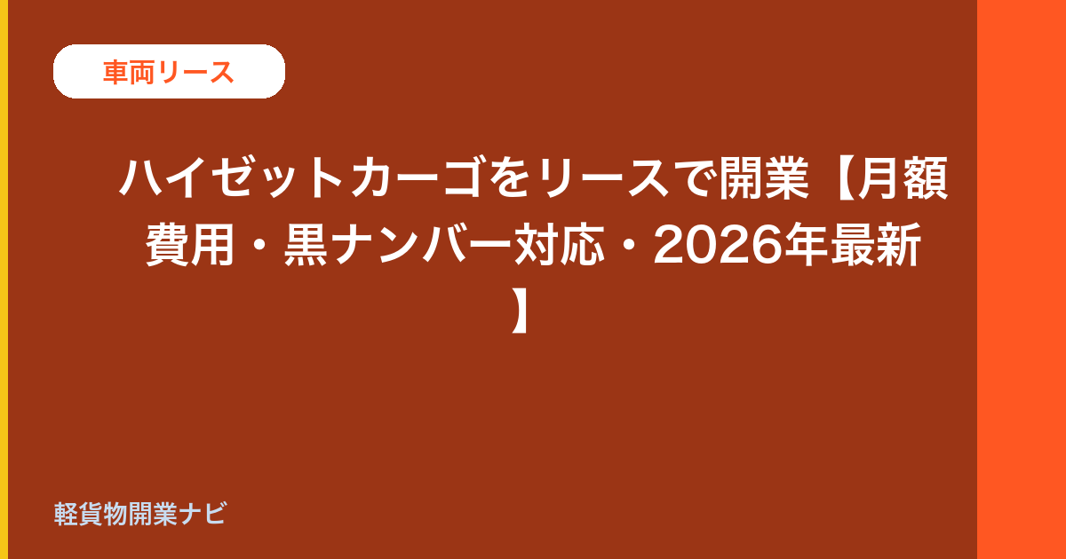 ハイゼットカーゴをリースで開業【月額費用・黒ナンバー対応・2026年最新】