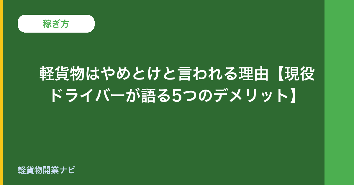 軽貨物はやめとけと言われる理由【現役ドライバーが語る5つのデメリット】