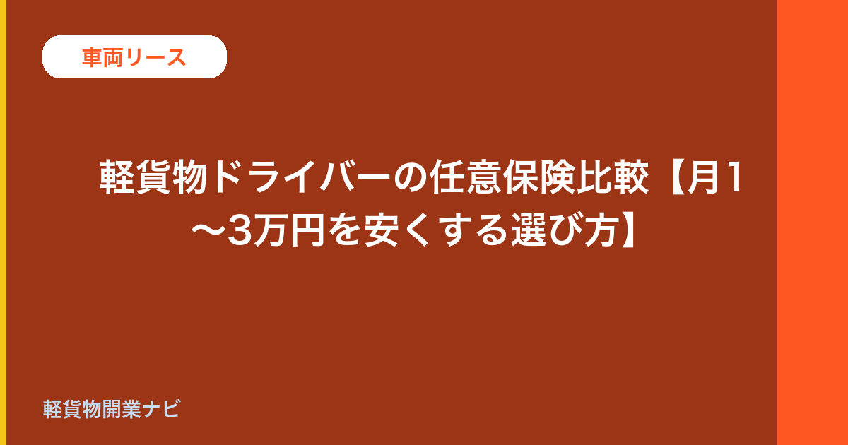軽貨物ドライバーの任意保険比較【月1〜3万円を安くする選び方】