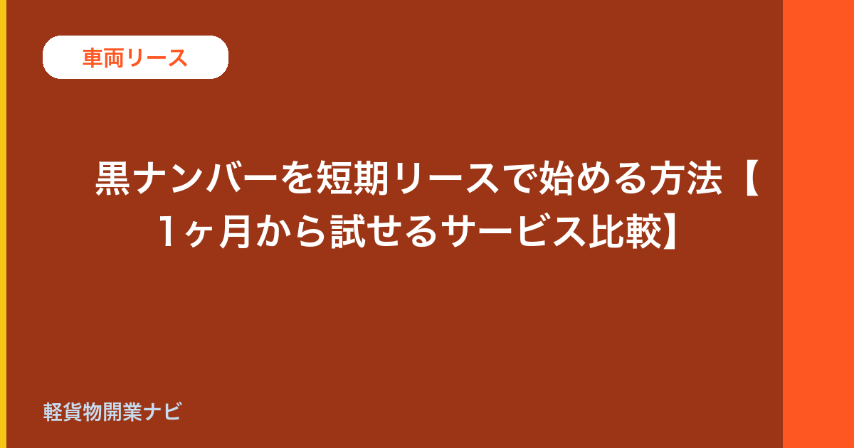 黒ナンバーを短期リースで始める方法【1ヶ月から試せるサービス比較】