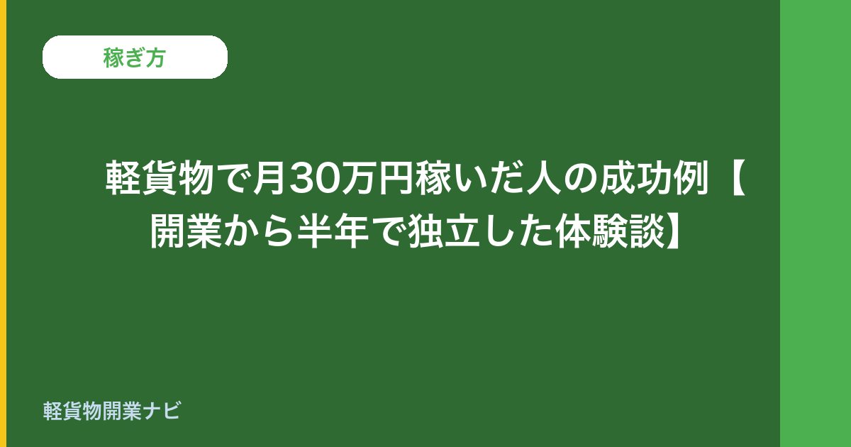 軽貨物で月30万円稼いだ人の成功例【開業から半年で独立した体験談】